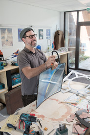 Naviguant entre notre atelier pour fabriquer, et la Chapelle pour jouer, Mathilde, Matéo et Gabriel ont gardé grandes ouvertes les portes de leur résidence pour nous permettre de suivre leur processus. Et la photographe Emma Barthère a porté son regard sur ce travail en cours...